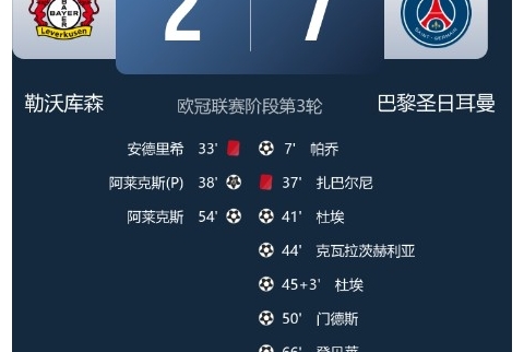 扎巴尔尼两送点+红牌杜埃双响登贝莱破门