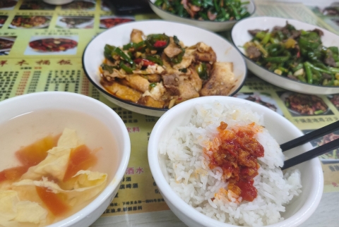 今天中午吃的鸡公煲!